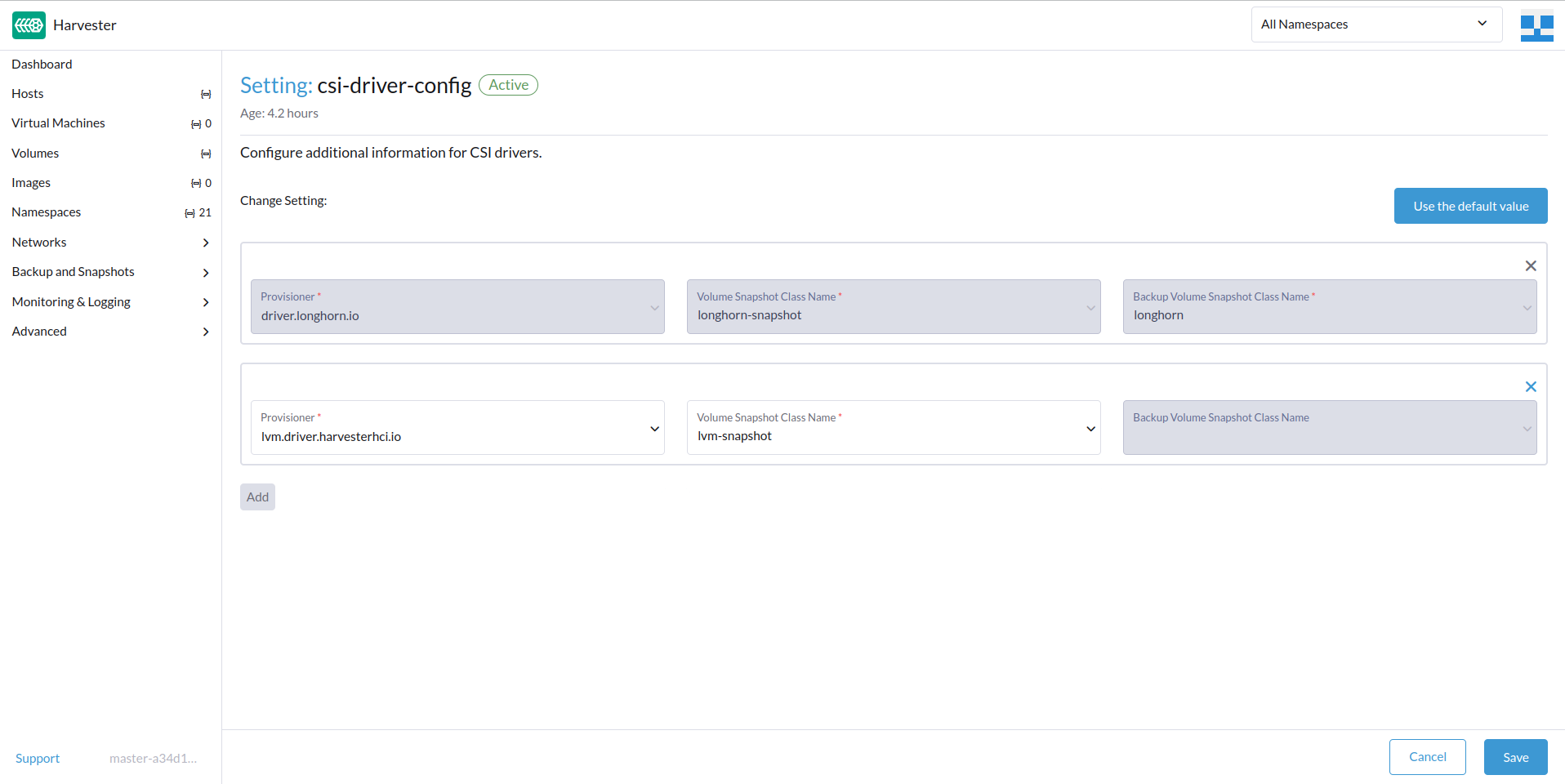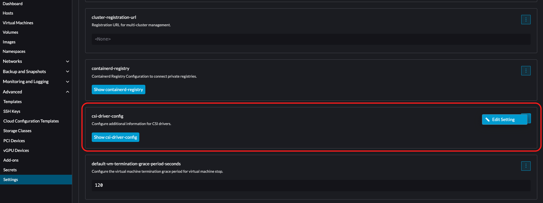 2. In the csi-driver-config section, select > Edit Setting.