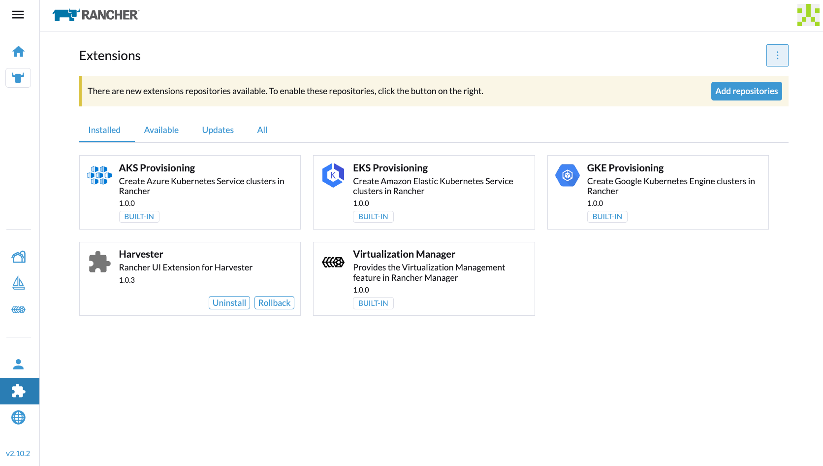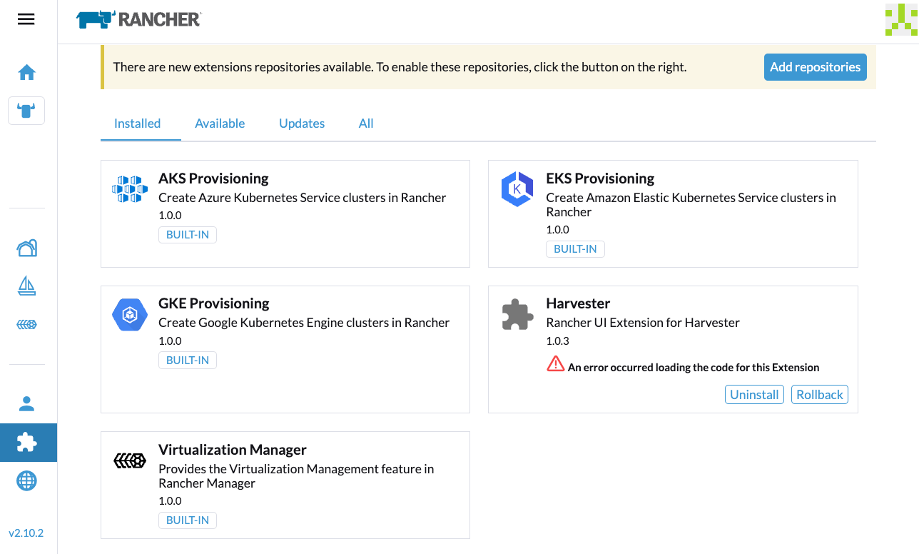 For more information, see the Harvester UI Extension Support Matrix.