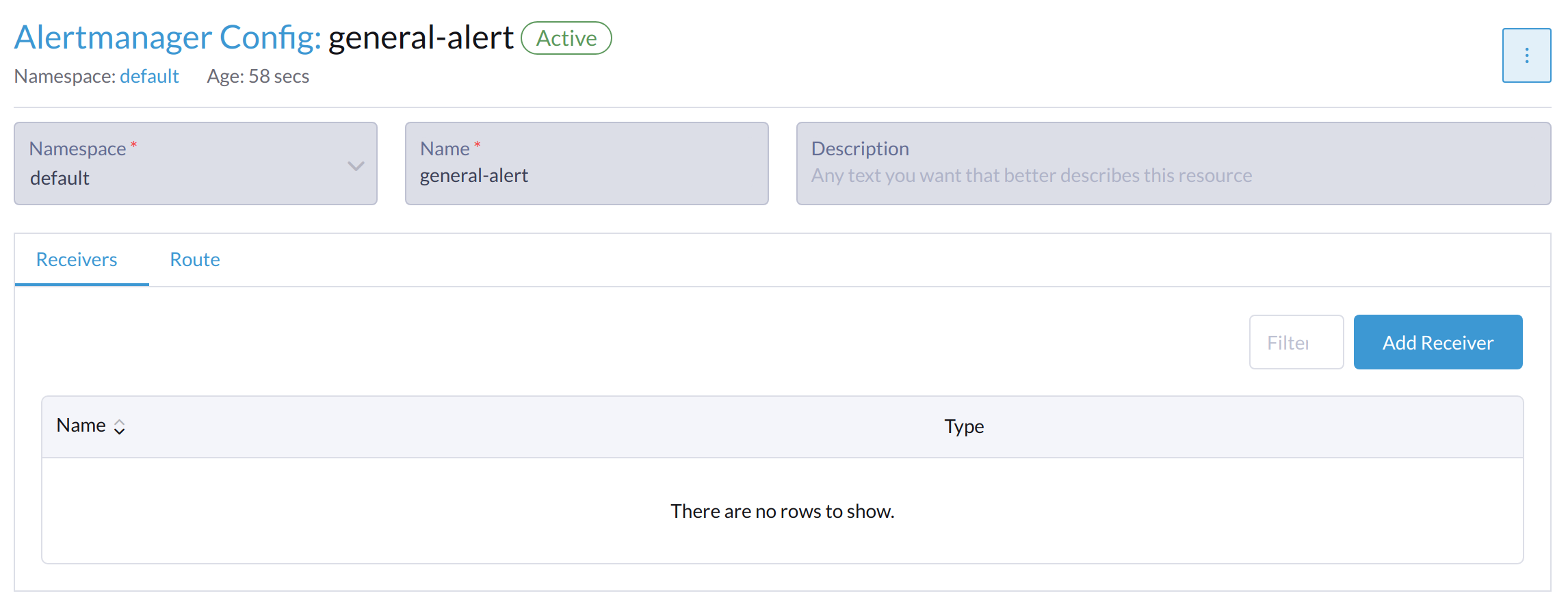 Click the Alertmanager Configs you just created to continue the configuration.