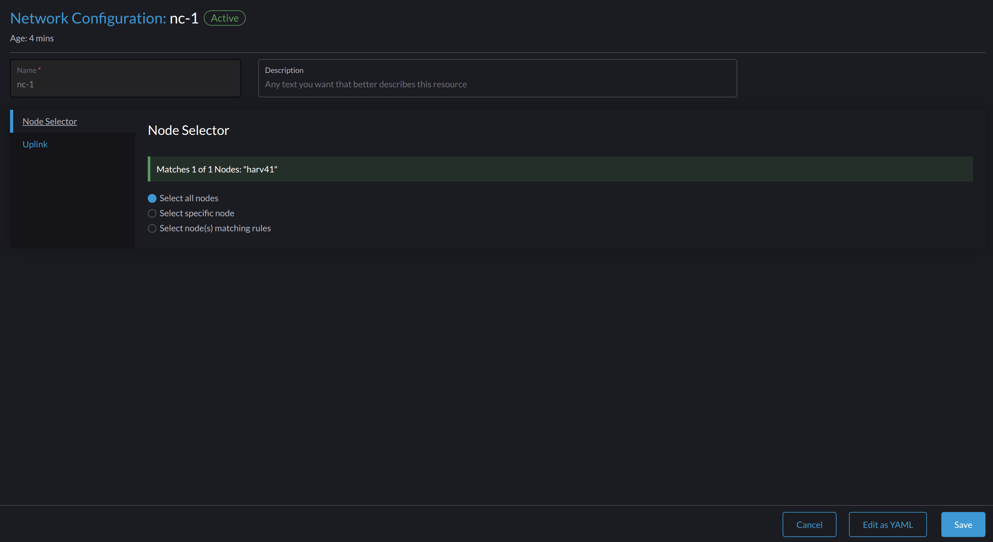 - If you want the configuration to apply to nodes that are not covered by the selected method, you must create another network configuration.